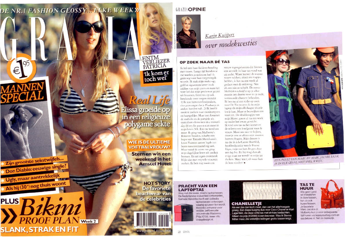 Pracht van een laptoptas. Weg met die saaie, zwarte laptoptassen. De Nederlandse ontwerpster Nathalie Hendriks heeft een collectie laptoptassen ontworpen waarbij sjouwen fun wordt. Hendriks ontwerpt voor vrolijke, zelfbewuste vrouwen als Madonna.