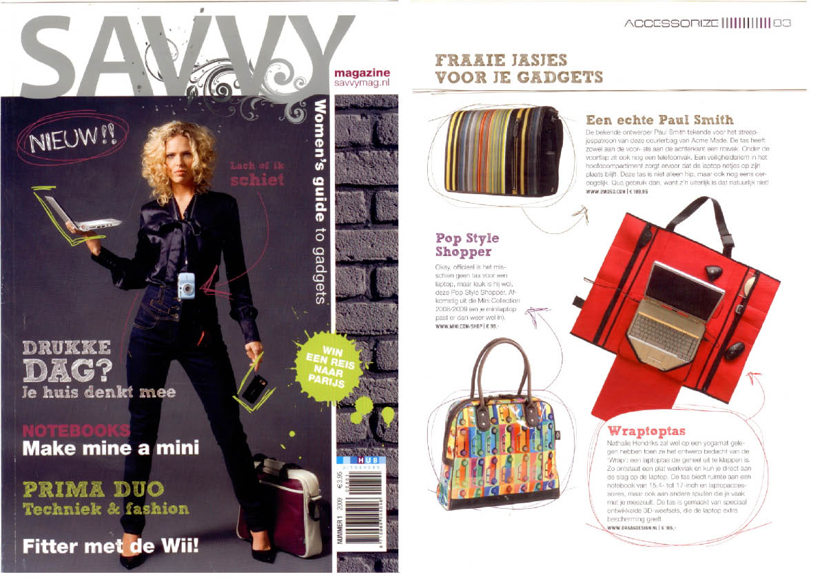Je laptop meezeulen en toch de blits maken? Dan zijn de überhippe laptoptassen van de Schiedamse ontwerpster Nathalie Hendriks iets voor jou. Onder het label DRAAG! zijn verschillende modellen in dito gezellige felle kleurtjes verkrijgbaar.