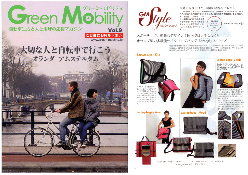 De tassen worden gepromoot als de perfecte tas om je laptop op de fiets mee te nemen, door Joe Suzuki, een Japanse journalist. Met name de Kite tas en de Celeb slaan in Japan goed aan.